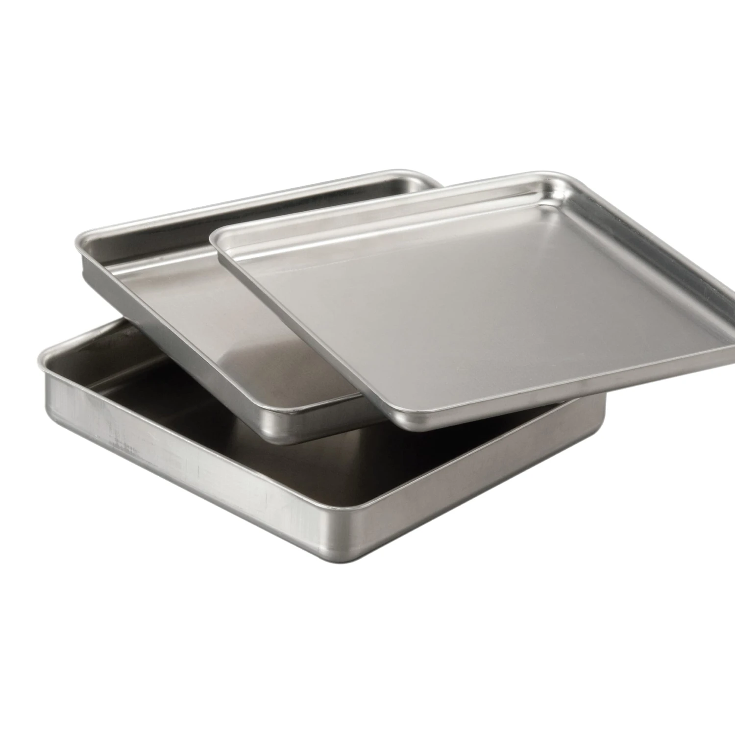 This 12″ square pizza pan from American Metalcraft features heavy-weight 14 gauge, 1.5 mm aluminum with straight-sides.