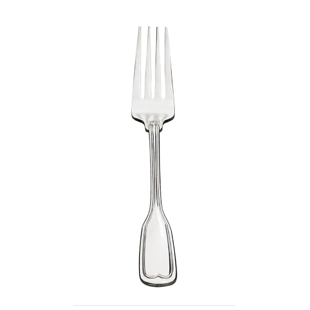 The Lafayette Flatware Collection from Browne Foodservice features a warm, silver-like appearance with a square shape and curved detailing on the handle.