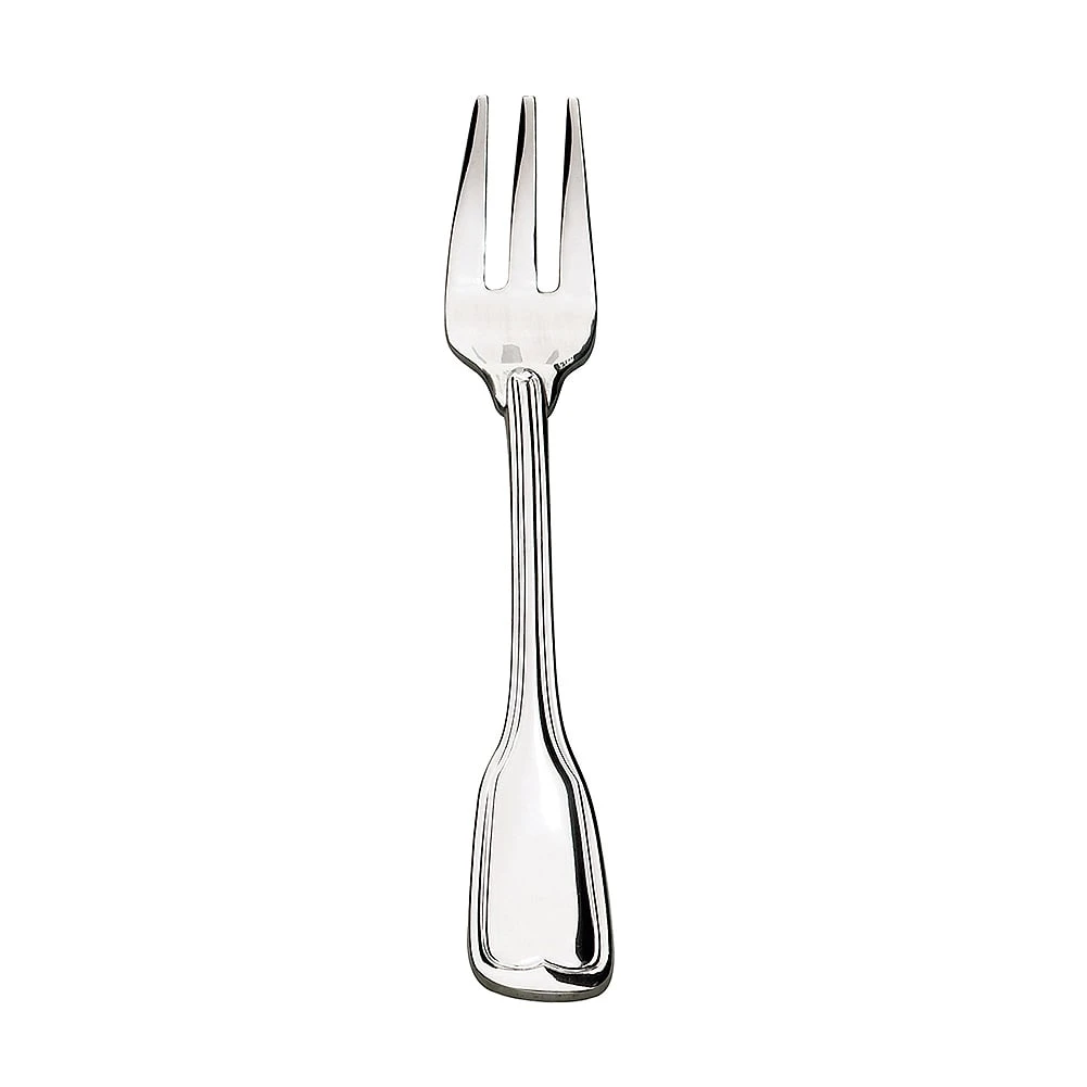 The Lafayette Flatware Collection from Browne Foodservice features a warm, silver-like appearance with a square shape and curved detailing on the handle.