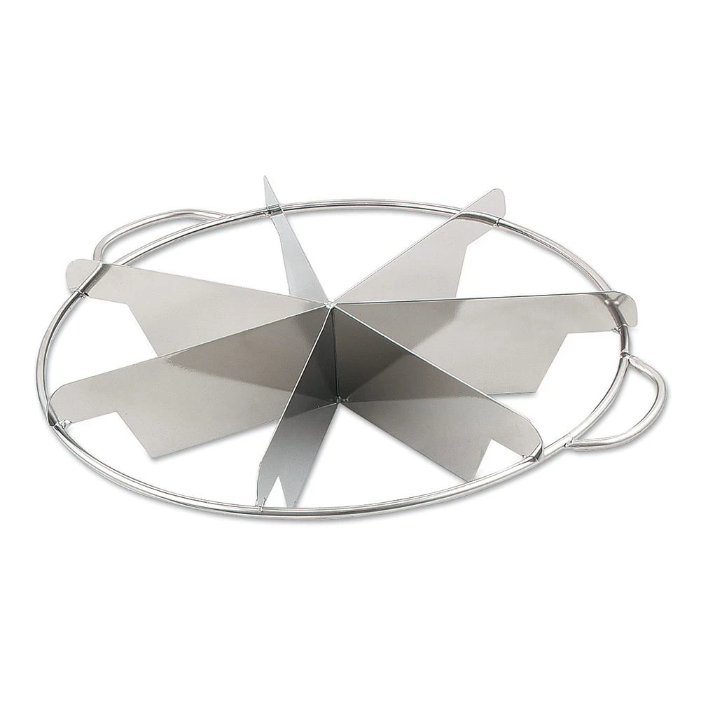 This 11″ pie cutter cuts in 7 sections and features stainless steel construction with two handles on the sides for easy use.
