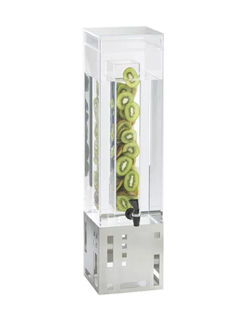 This stylish beverage dispenser from Cal‐Mil features a squared shape and has a capacity of 1.5 gallons. It features a special chamber which makes it simple to create a variety of infused beverages. Add fruit to water, tea, or any beverage of your choice and impress your guests. It also has a removable spigot for cleaning and includes a drip tray.