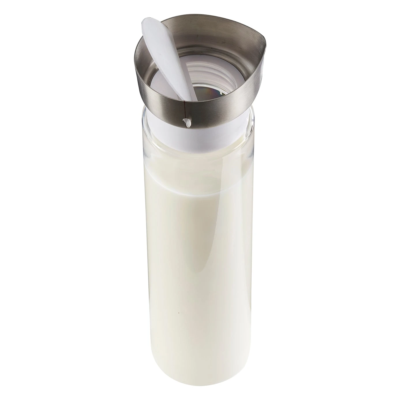 This easy‐to‐carry polycarbonate pitcher from Cal‐Mil is both practical, and aesthetically pleasing. The durable body ensures it will hold up day after day, and the stainless steel pour spout draws the eye and breaks up the pitcher.