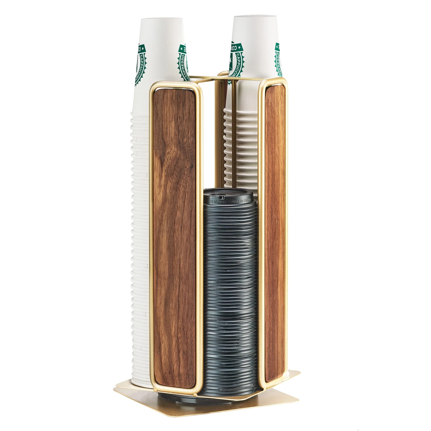 This Mid‐Century Revolving Cup and Lid Dispenser from Cal‐Mil has 4 compartments and holds cups and lids up to 3.75″ in diameter.