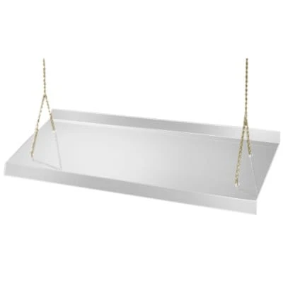 This sneeze guard is constructed of acrylic plastic and is designed to suspended from the ceiling. The single face design is ideal for one‐sided buffets. Hanging chain and mounting hardware included.