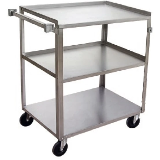 This Channel Bussing Cart has three shelves and is able to hold up to 500 pounds. It features Stainless steel construction, and moves around easily on 5″ all-swivel casters.