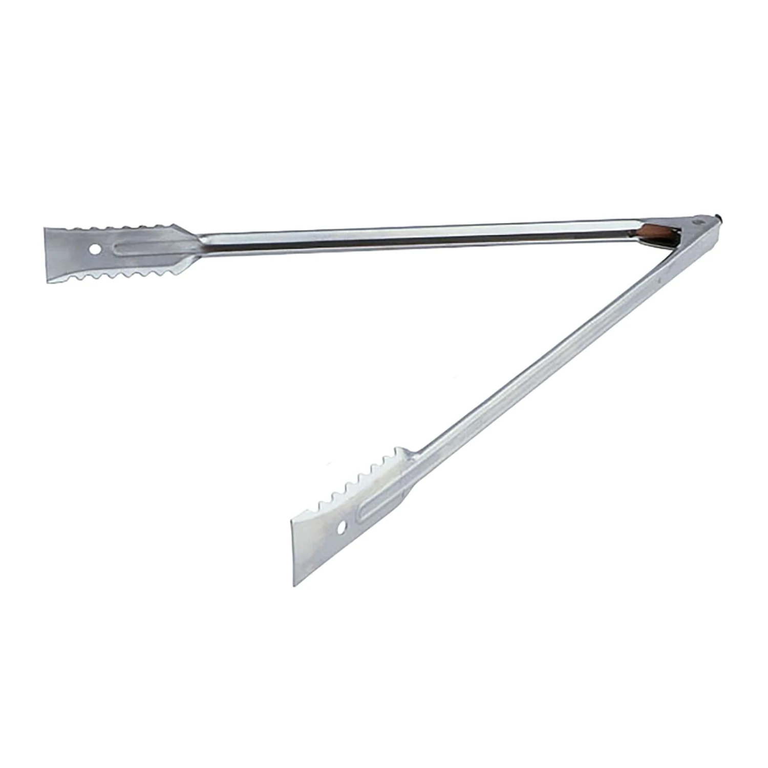 This 12″ heavy duty gripper tong from Edlund features a flat head design that enables operators to pry apart frozen foods. The teeth on the flat head provide a strong grip on food items and is perfect for separating frozen burger patties or for a firmer grip on platters.