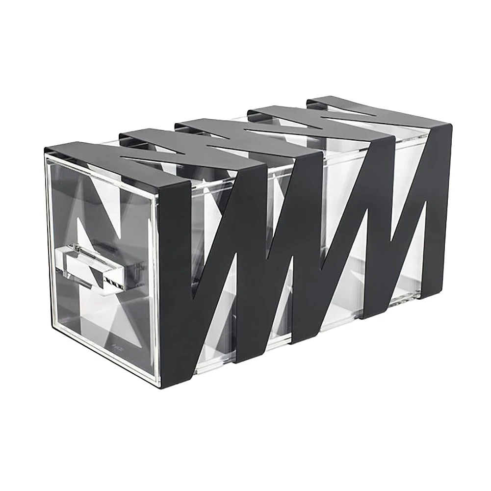 These matte black display drawers from Front Of The House® house many items from salads to breads. Housings can also double as risers!