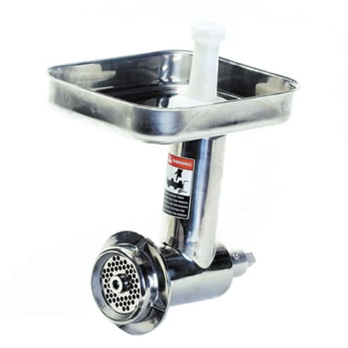 - Includes: Knife, 3/16″ plate, pusher, polished stainless steel cylinder, worm, ring and pan