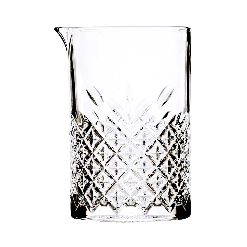 This mixing glass from Hospitality Glass has a 24.5 ounce capacity and features a beautiful etched design.