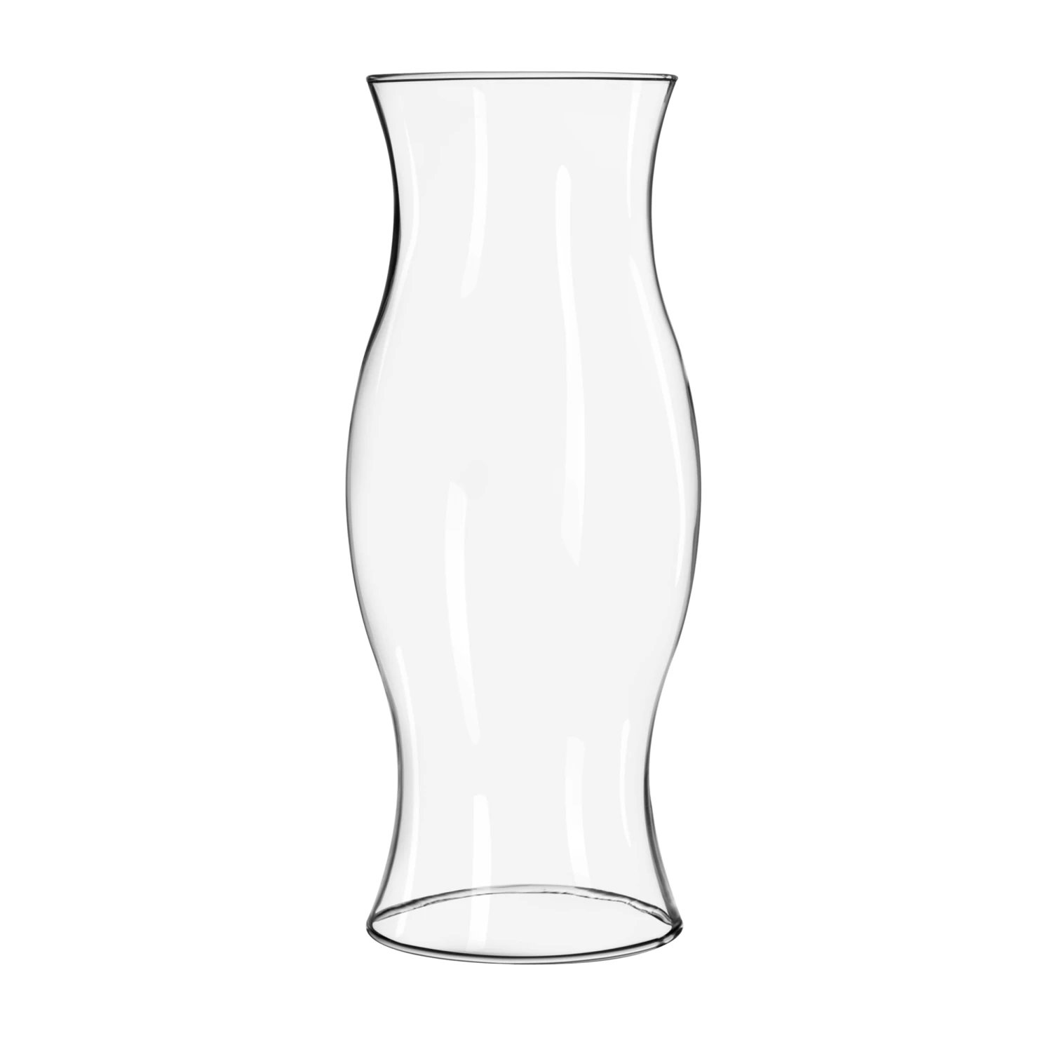 This large glass shade is the same curvy shape as a traditional hurricane glass, only a full 14″ tall and 6″ in diameter.