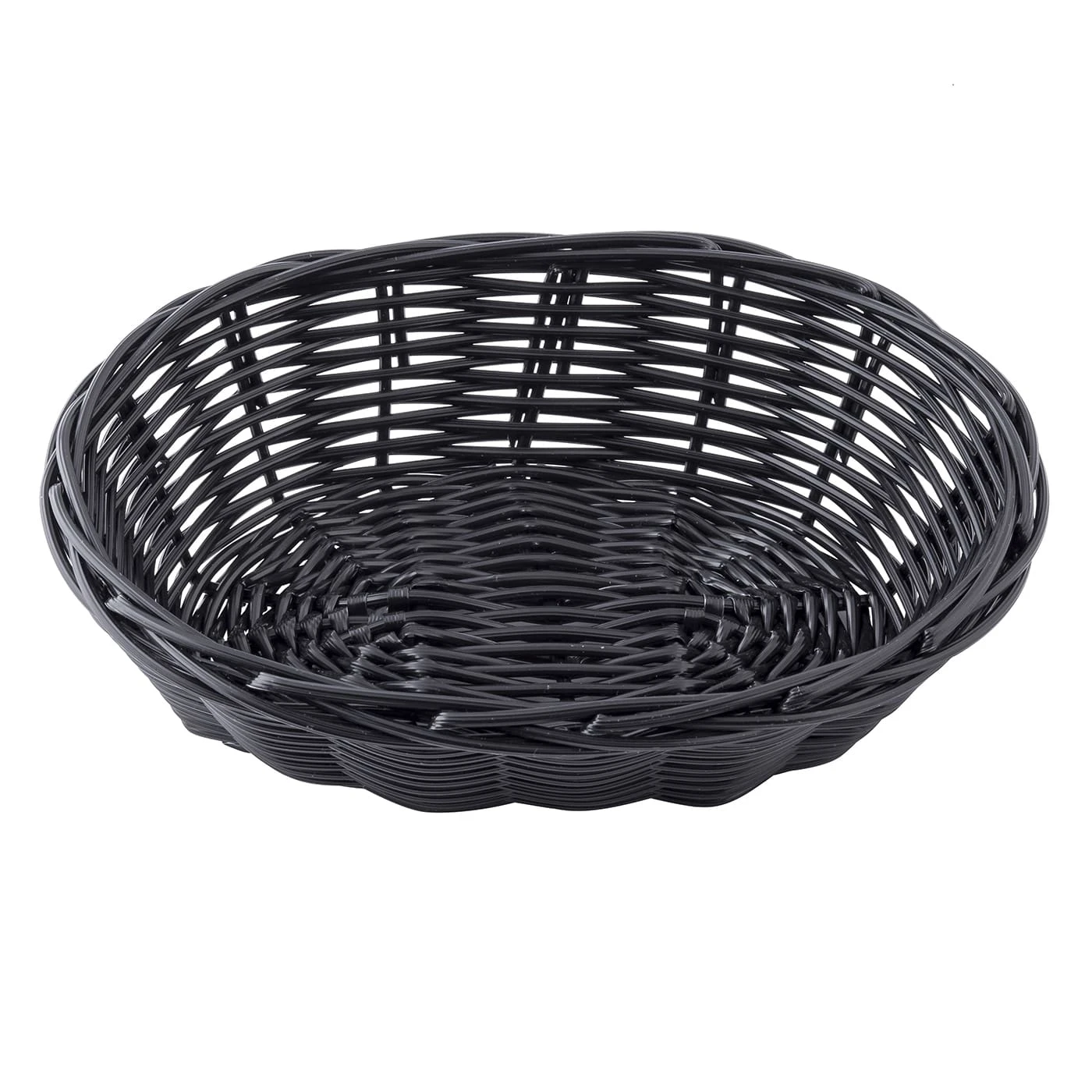 This TableCraft 2471 black oval rattan basket is an elegant, attractive solution for serving dinner rolls, bagels, pastries, crackers, and other similar items. It’s woven polypropylene cord construction is easy to clean with a damp cloth.