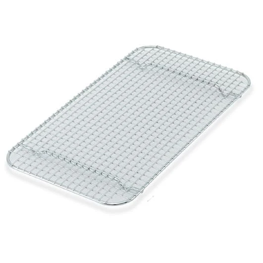 This full size wire grate is ideal for drying or icing baked goods and pastries and there is ample finger room for easy removal.