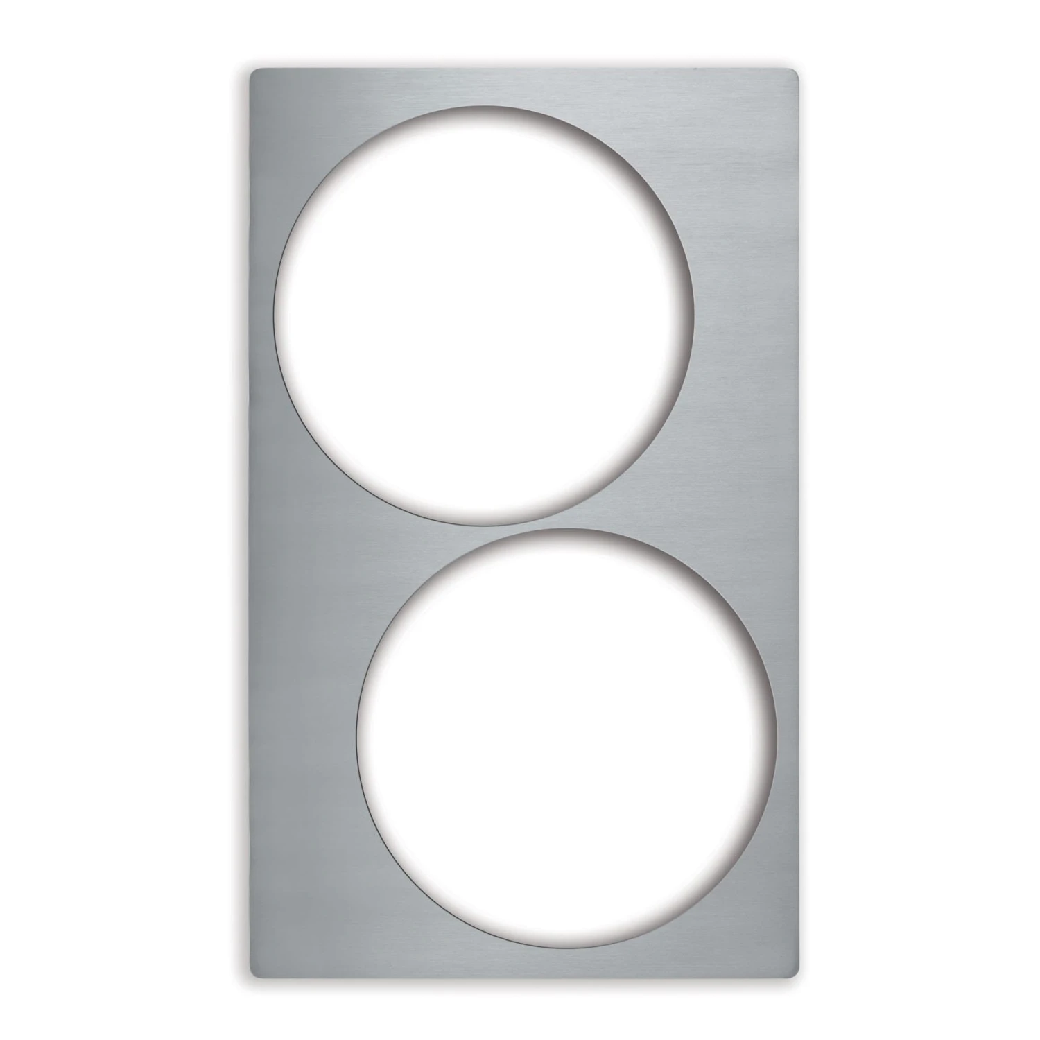 This stainless steel single size template from Vollrath® is for use with Miramar® display cookware (sold separately). This 21.13″ x 12.75″ template has two large round cutouts.