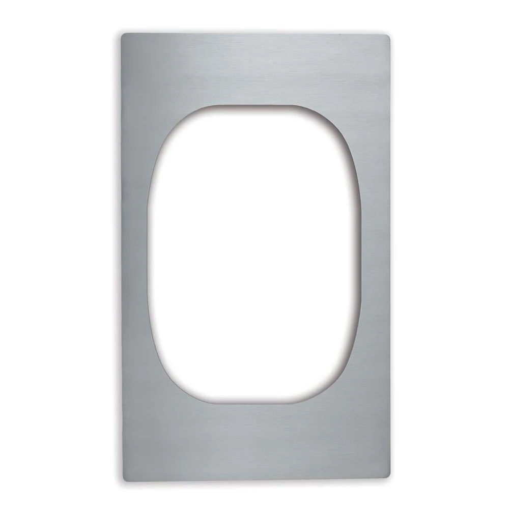 This stainless steel single size template from Vollrath® is for use with Miramar® display cookware (sold separately). This 21.13″ x 12.75″ template has one large oval cutout.