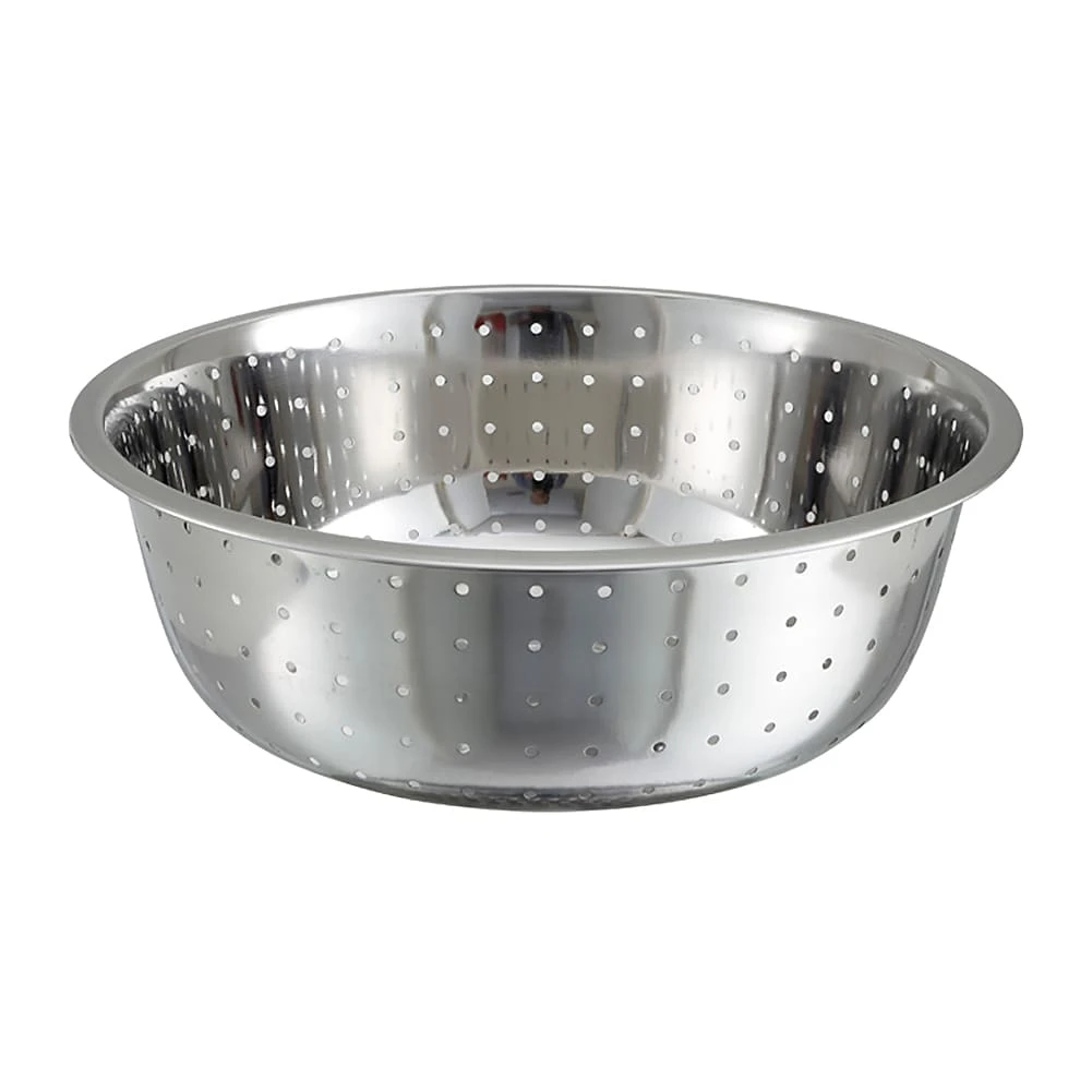 This 13″ Chinese Style Colander from Winco features stainless steel construction and a wide, smooth-edge rim for safe and secure grip.