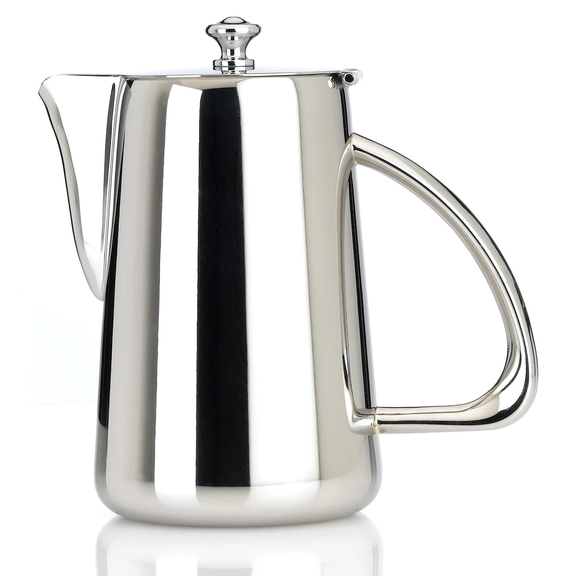 Providing first class service, this Kamina 53.5 ounce coffee pot is made using 18/10 stainless steel so it will last through years of use.